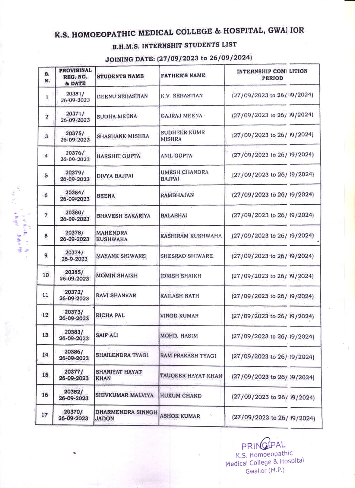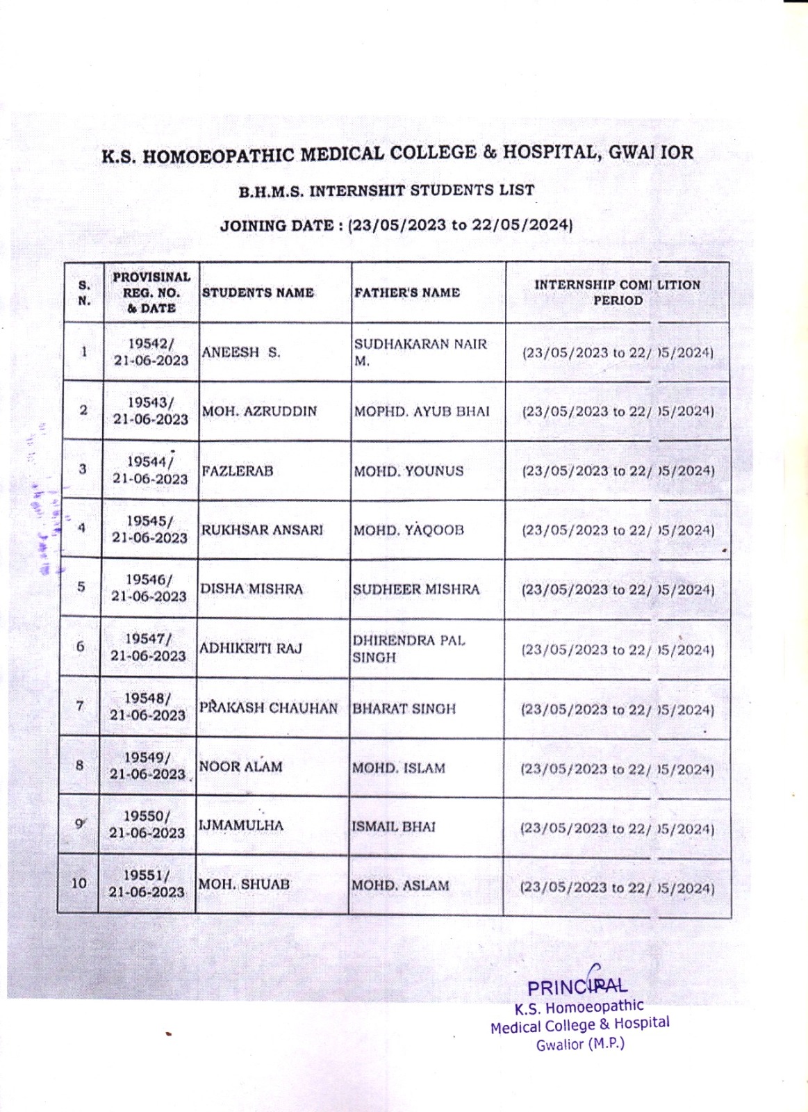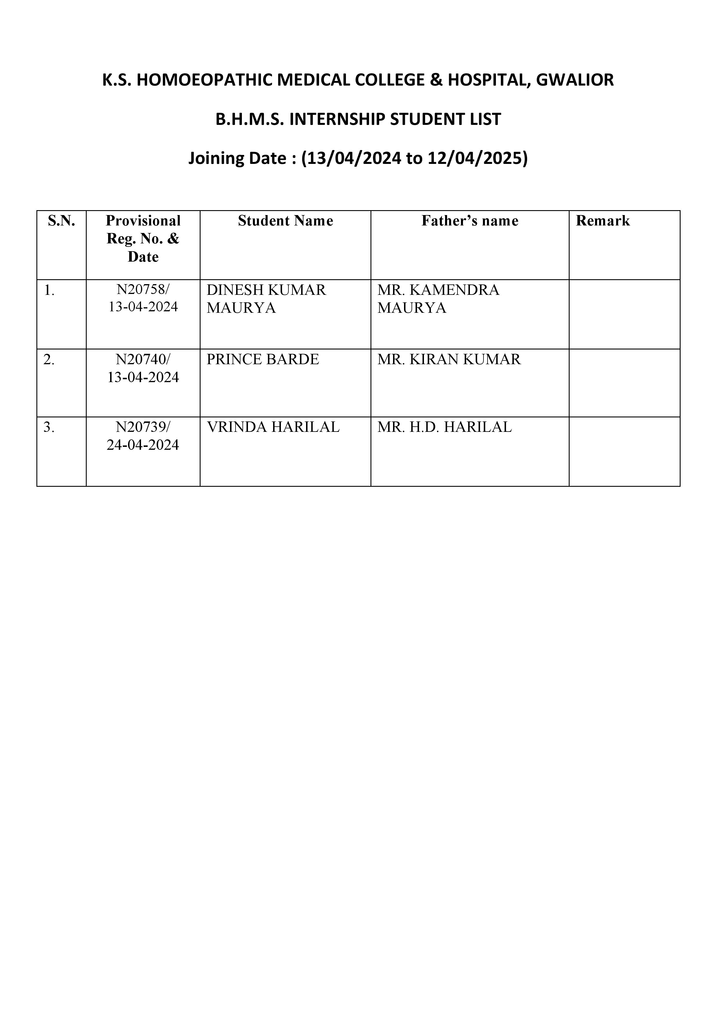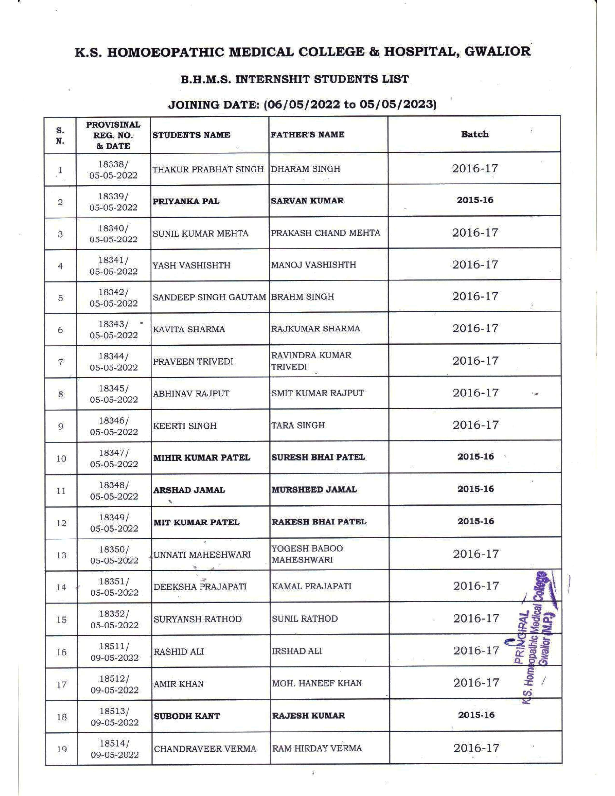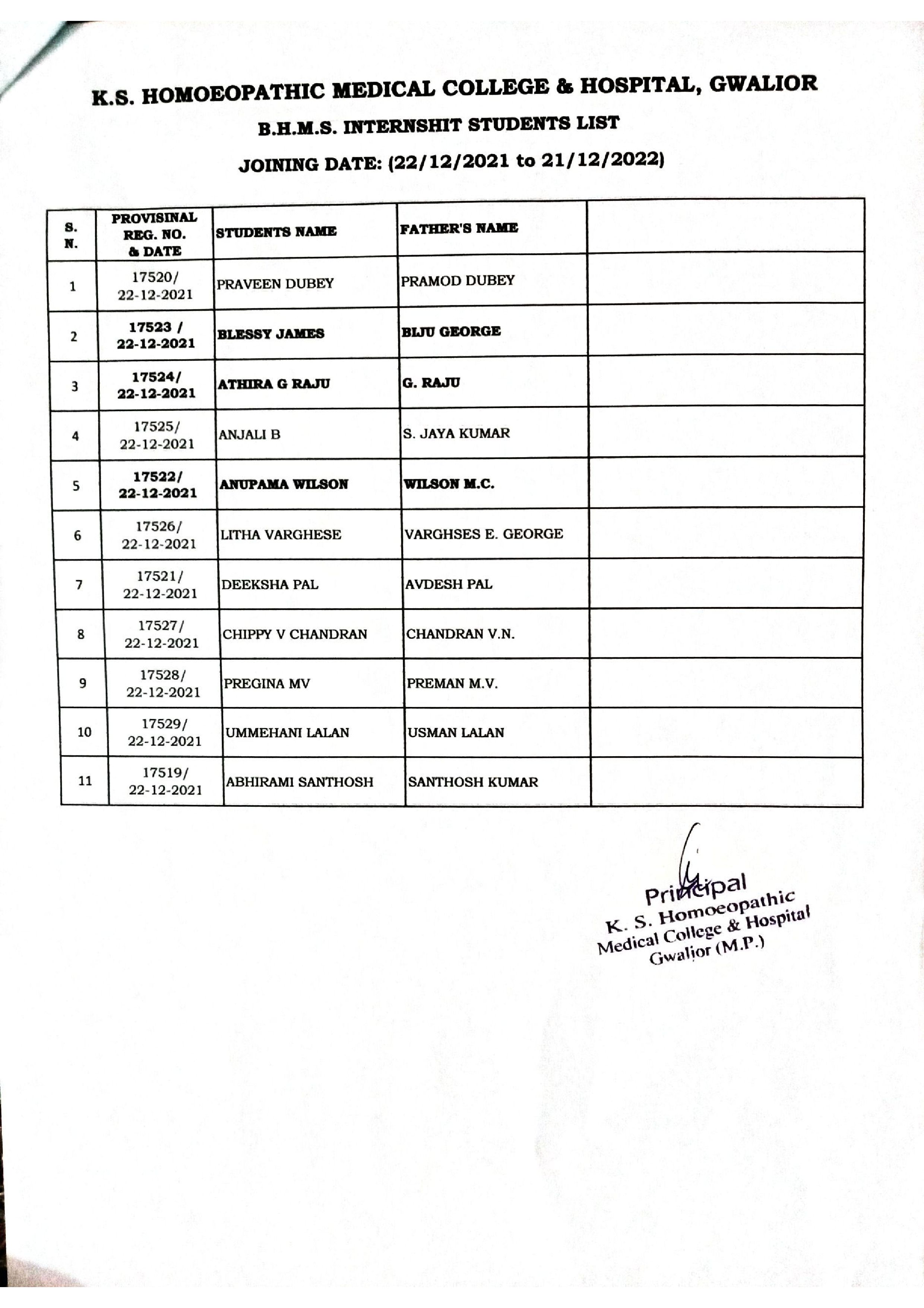 INTERNSHIP STUDENTS LIST
