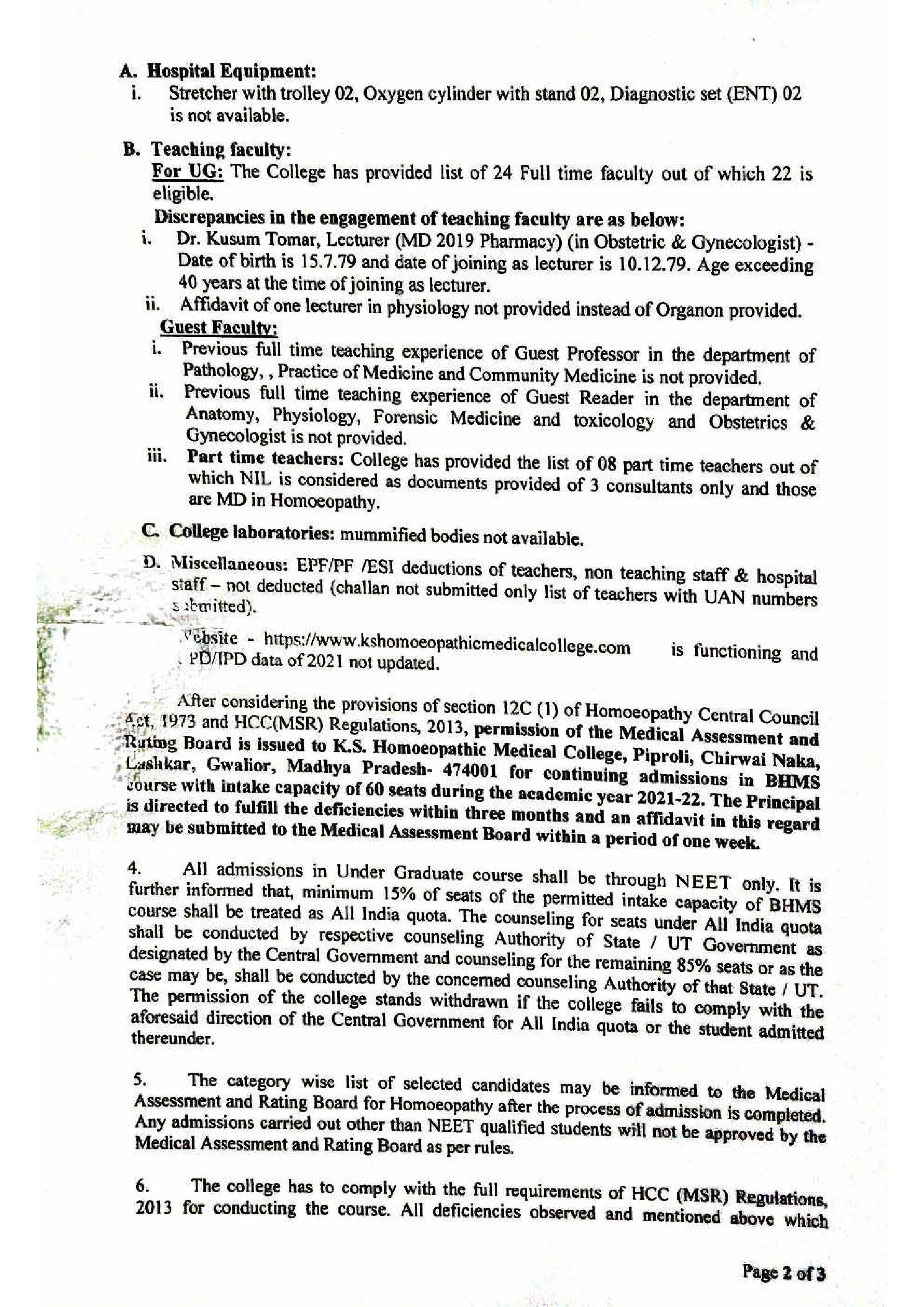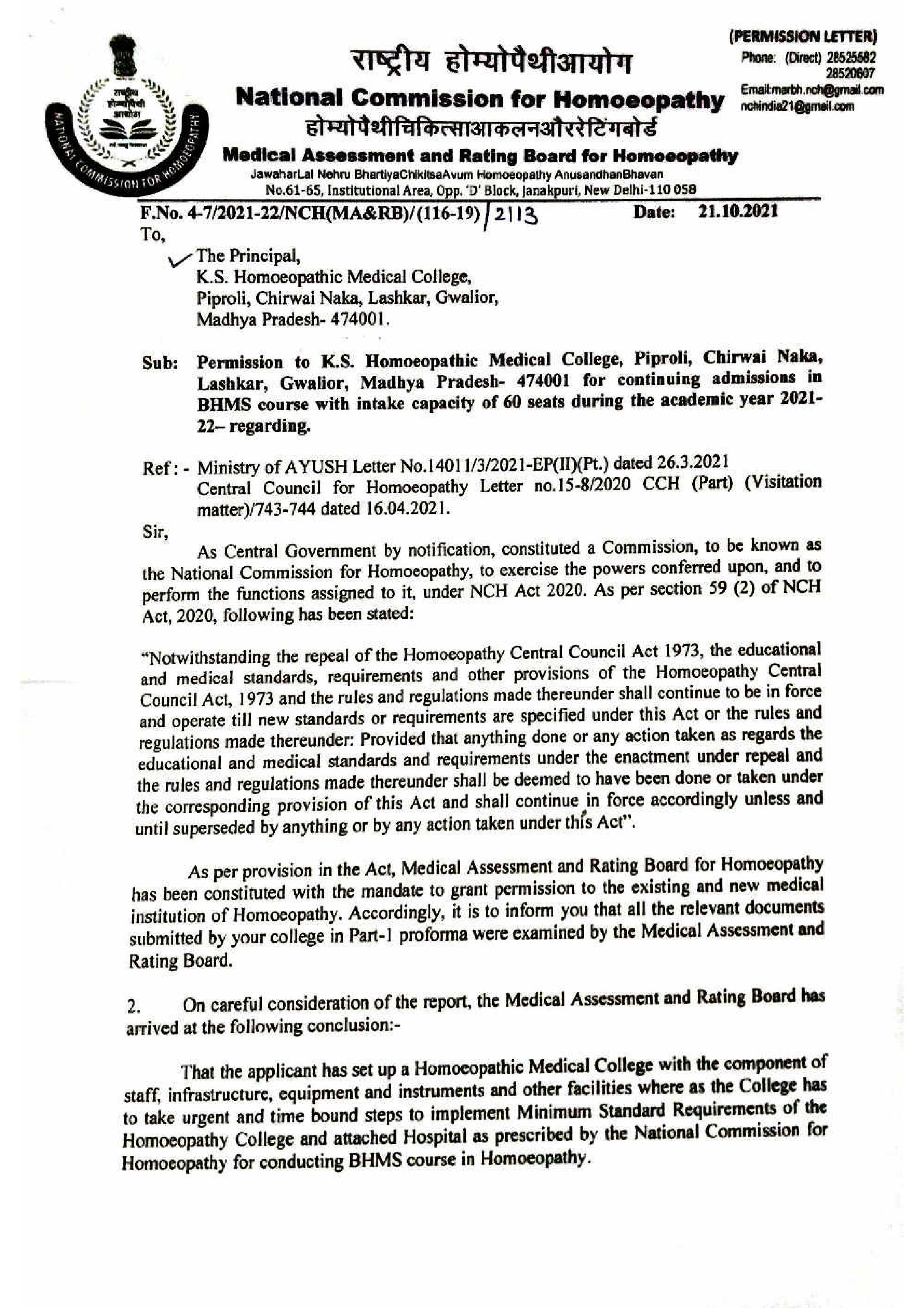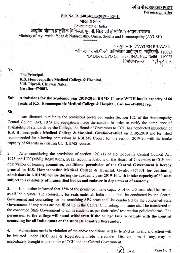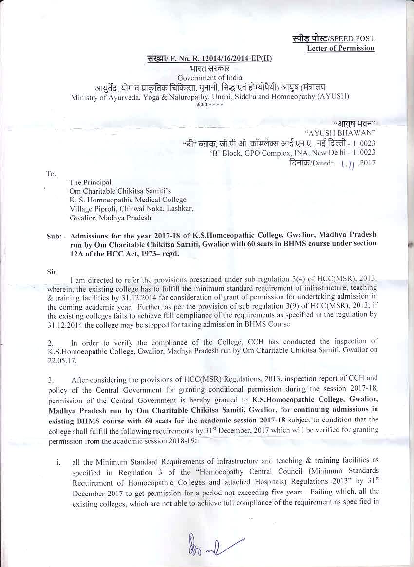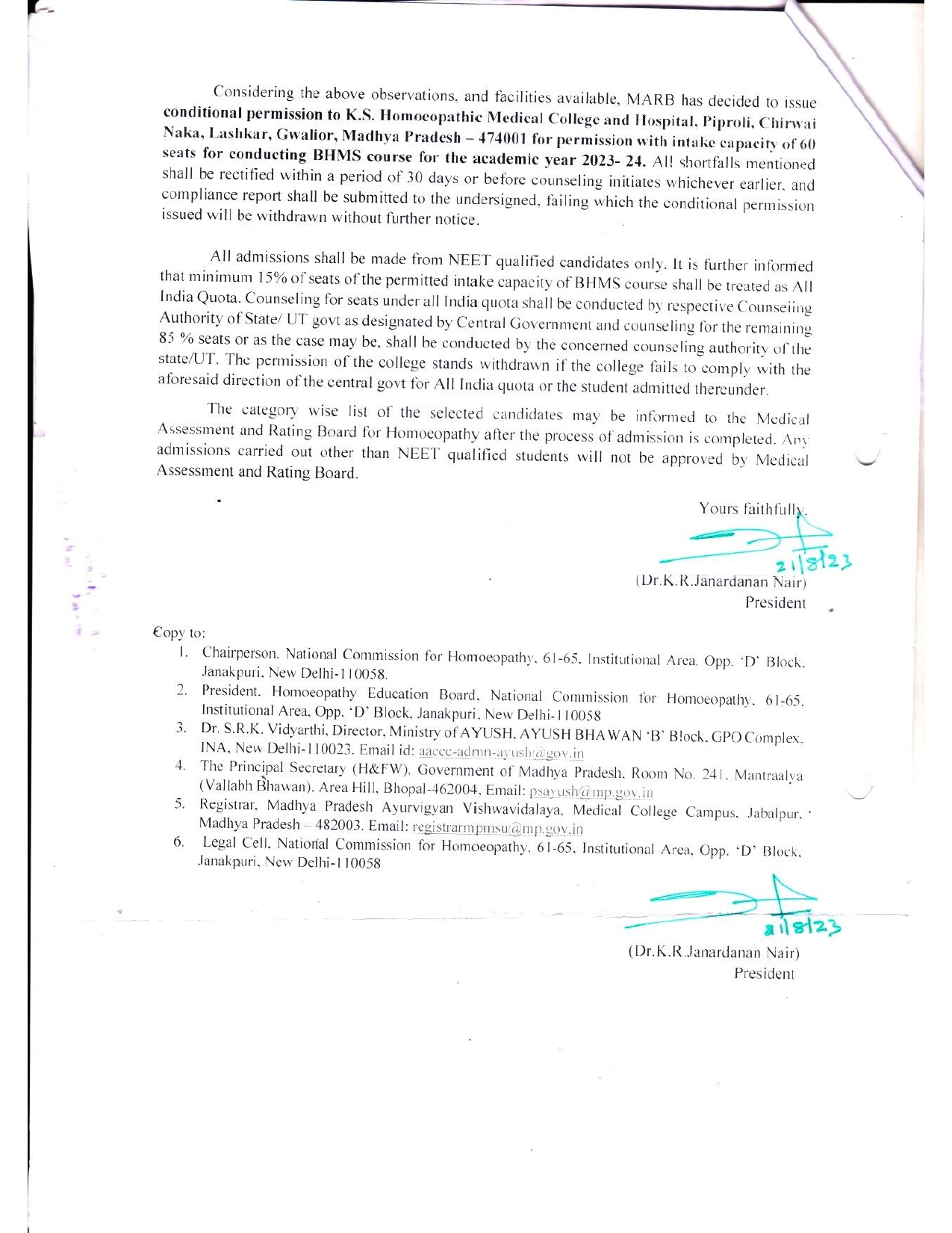 Dr. Ravindra Singh Kushwah is the Principal and chairman of the college council. There were four college council meetings held in the last 1 year. There were four inter departmental meetings held in the last 1 year. website = http://kshomoeopathicmedicalcollege.com/ The Course Conducted in KS Homoeopathic Medical College is B.H.M.S. four year degree course. The Intake capacity of B.H.M.S. Course = 60 sheats. The College is affiliated with M.P.M.S.U (Madhya Pradesh Medical Science University), Jabalpur (M.P.) M.P.M.S.U. Vice Chancellar - Dr. T.N. Dubey