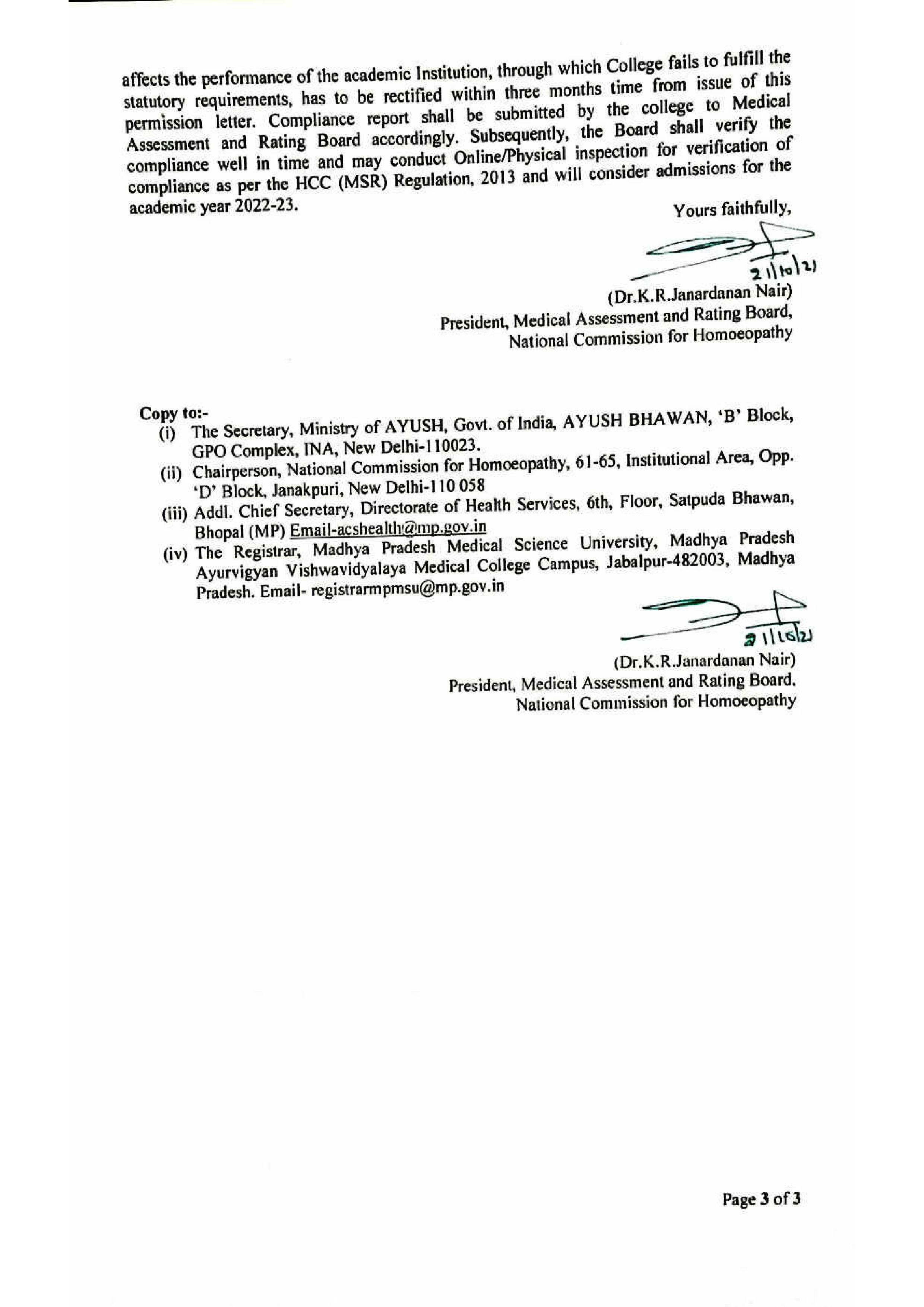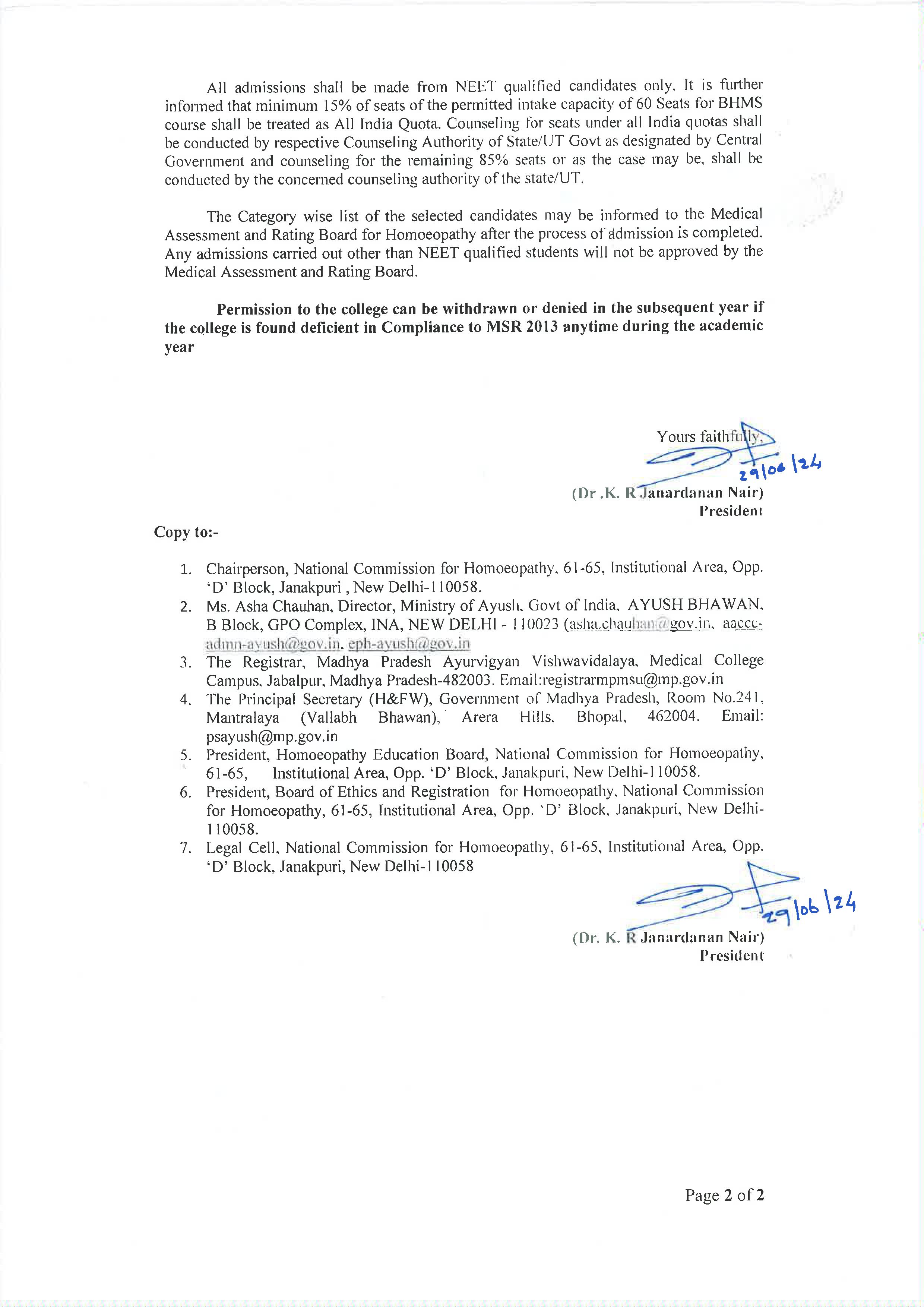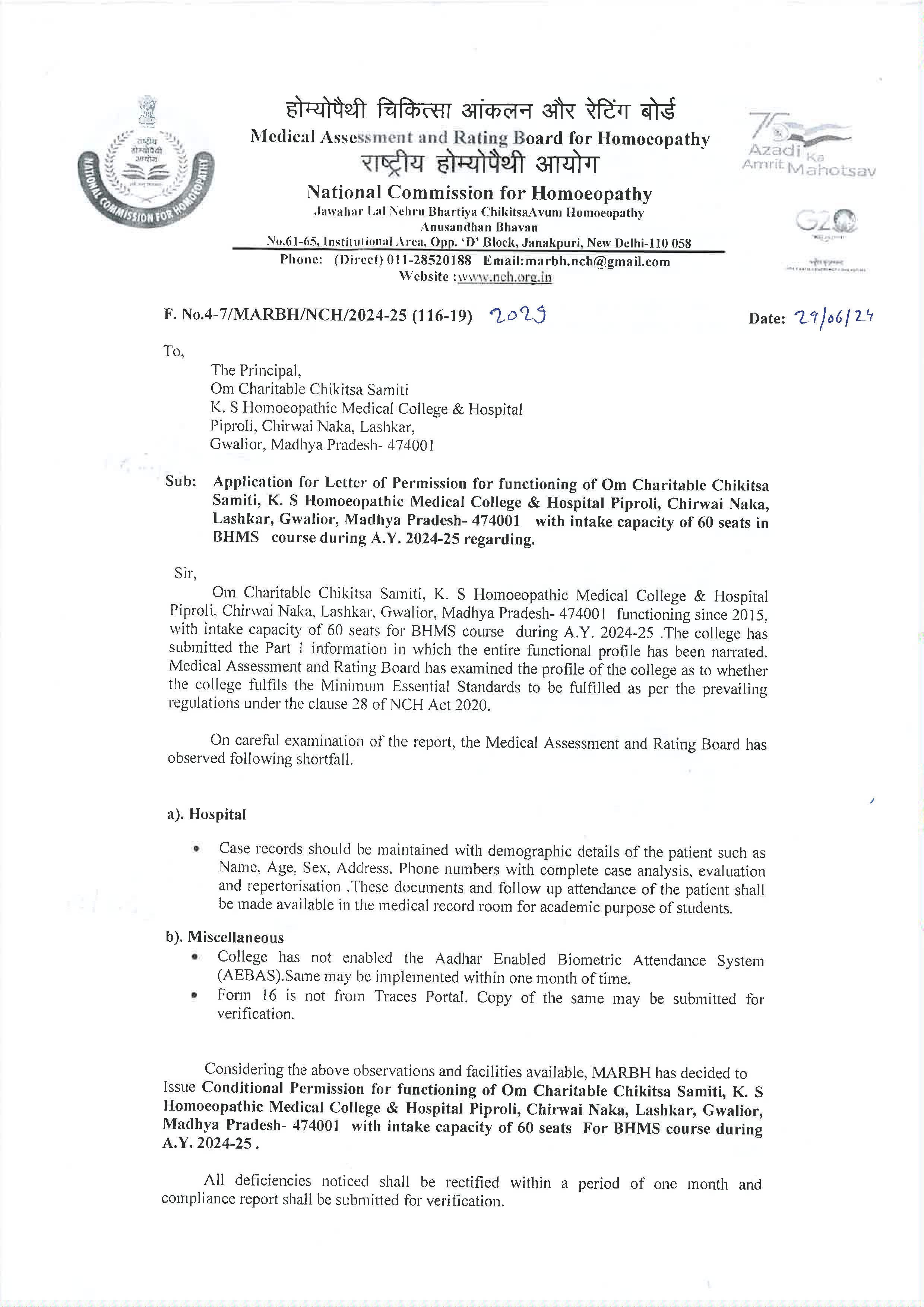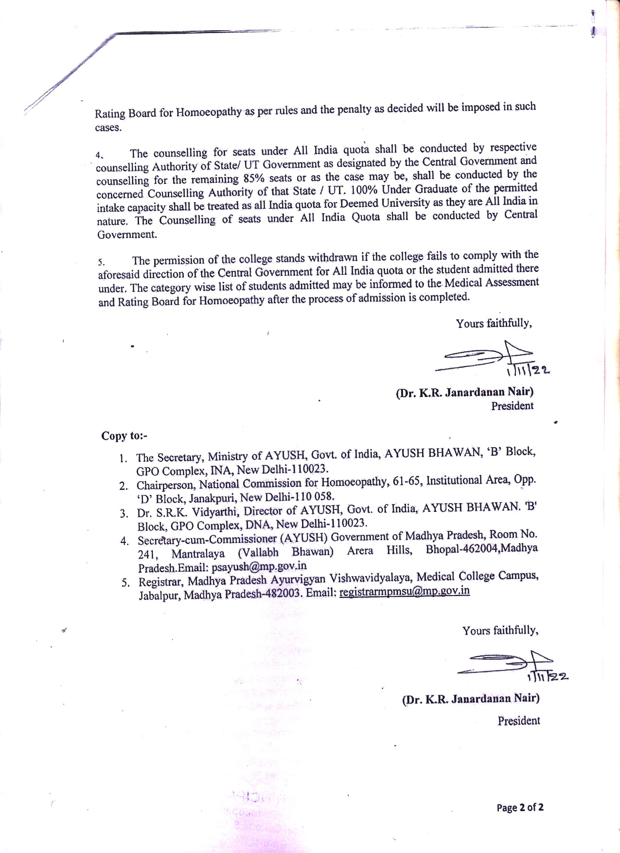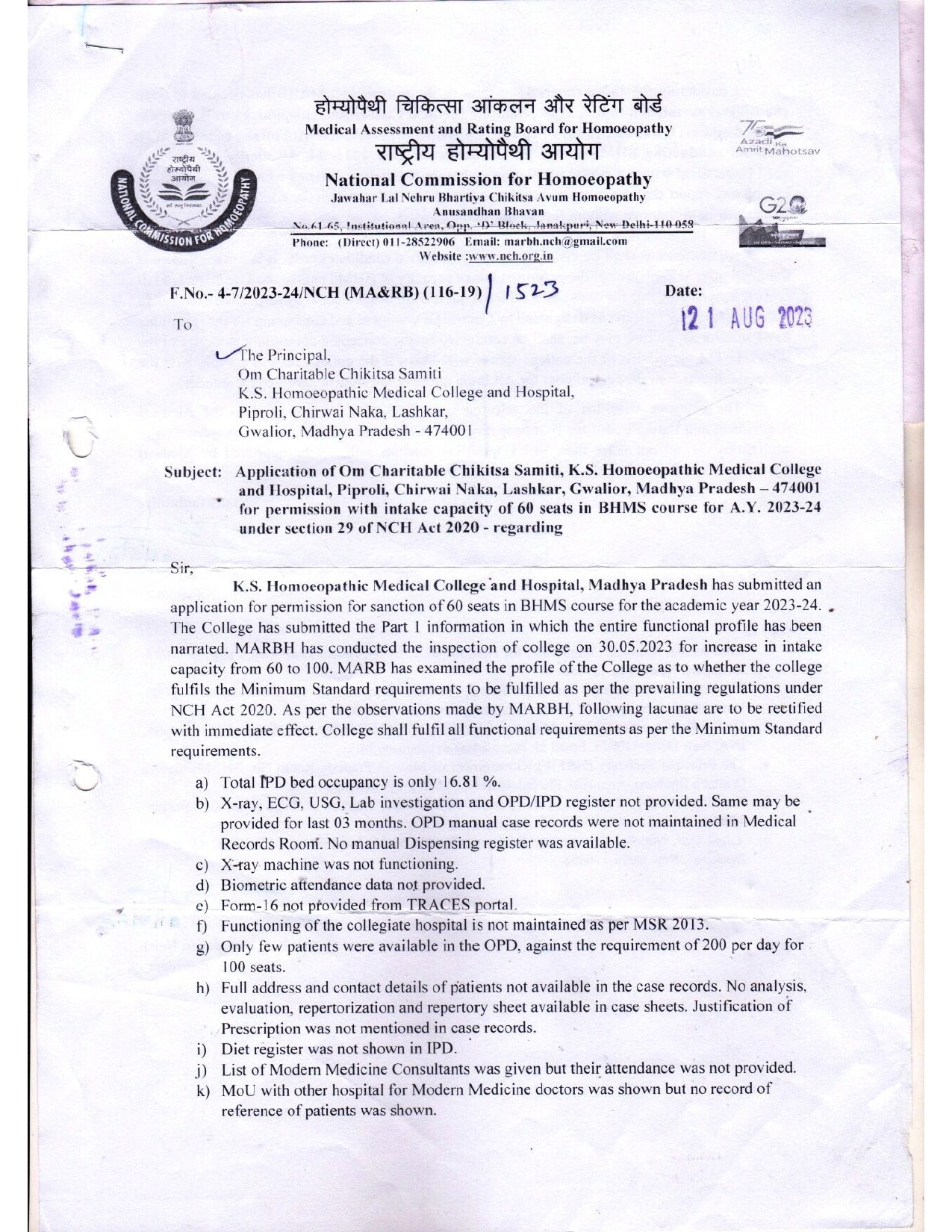 Dr. Ravindra Singh Kushwah is the Principal and chairman of the college council. There were four college council meetings held in the last 1 year. There were four inter departmental meetings held in the last 1 year. website = http://kshomoeopathicmedicalcollege.com/ The Course Conducted in KS Homoeopathic Medical College is B.H.M.S. four year degree course. The Intake capacity of B.H.M.S. Course = 60 sheats. The College is affiliated with M.P.M.S.U (Madhya Pradesh Medical Science University), Jabalpur (M.P.) M.P.M.S.U. Vice Chancellar - Dr. T.N. Dubey