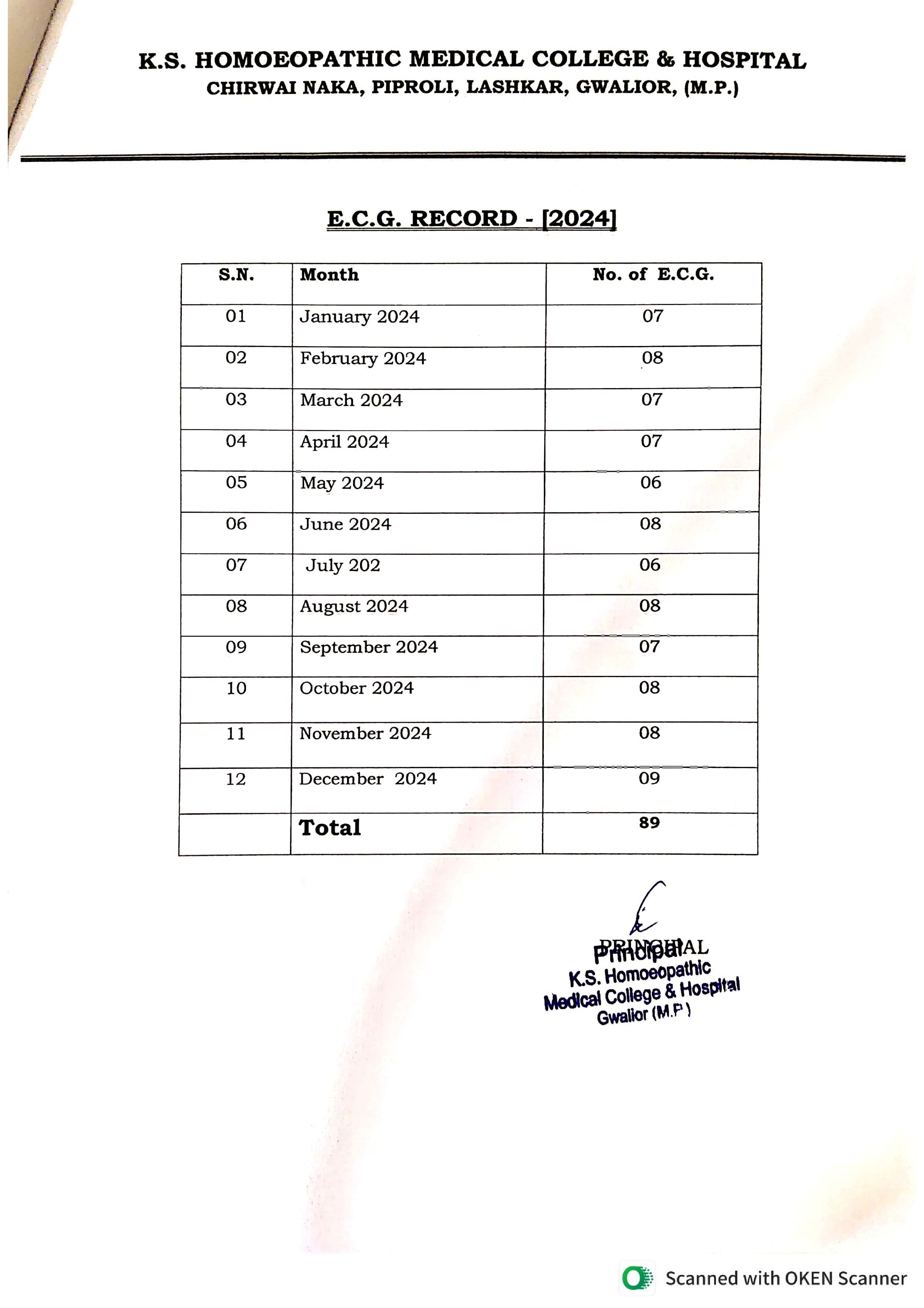 Infrastructure Measurment | Hospital Equipments | All Departments Equipments | Principal | OT / IPD / OPD |ECG Record | X Ray Record | Pathology | Yoga| Physiotherapy | Birth |